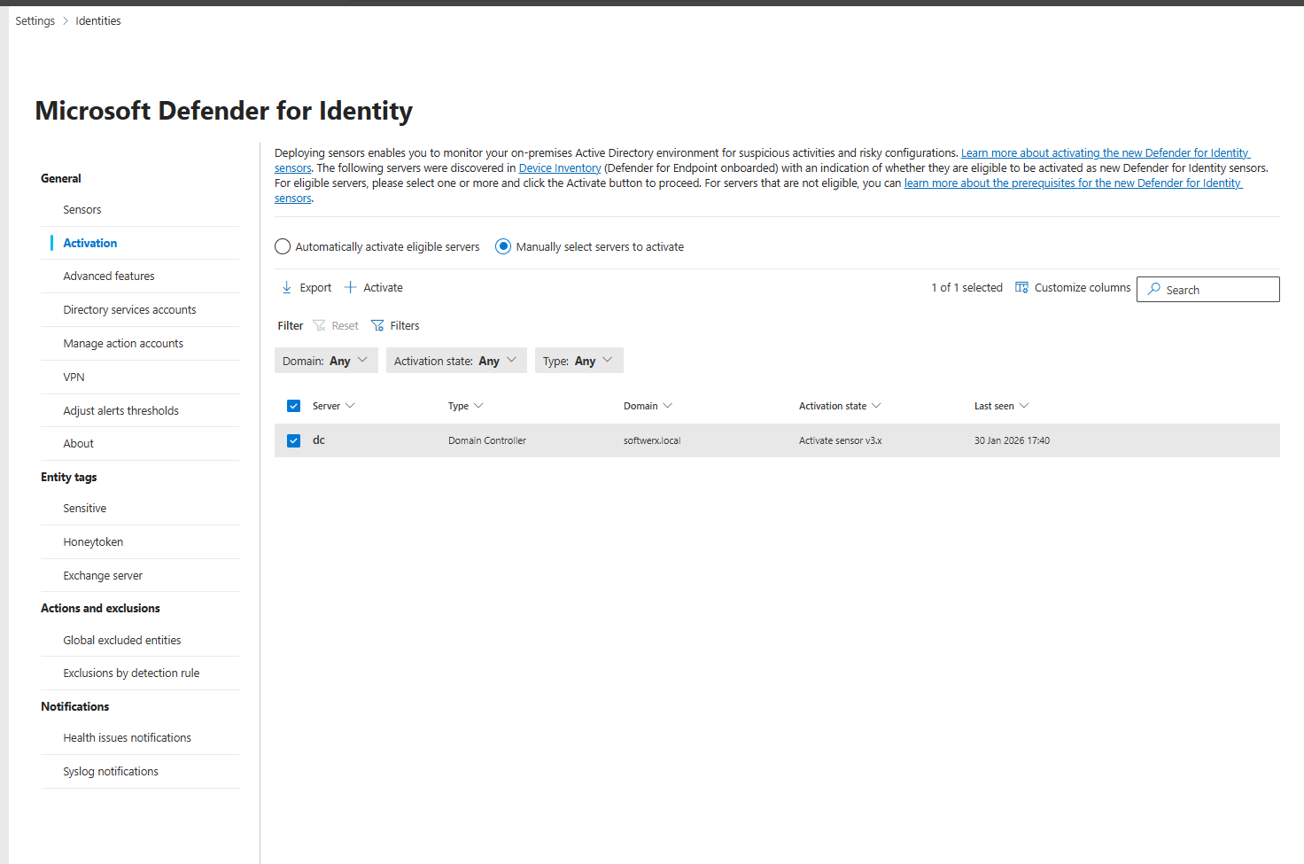 This is now the simplest path. Defender for Identity uses auto-activation if your DCs are already enrolled in Defender for Endpoint.