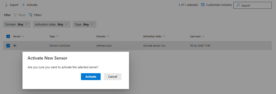 Step 3: Select a domain controller and click Activate.