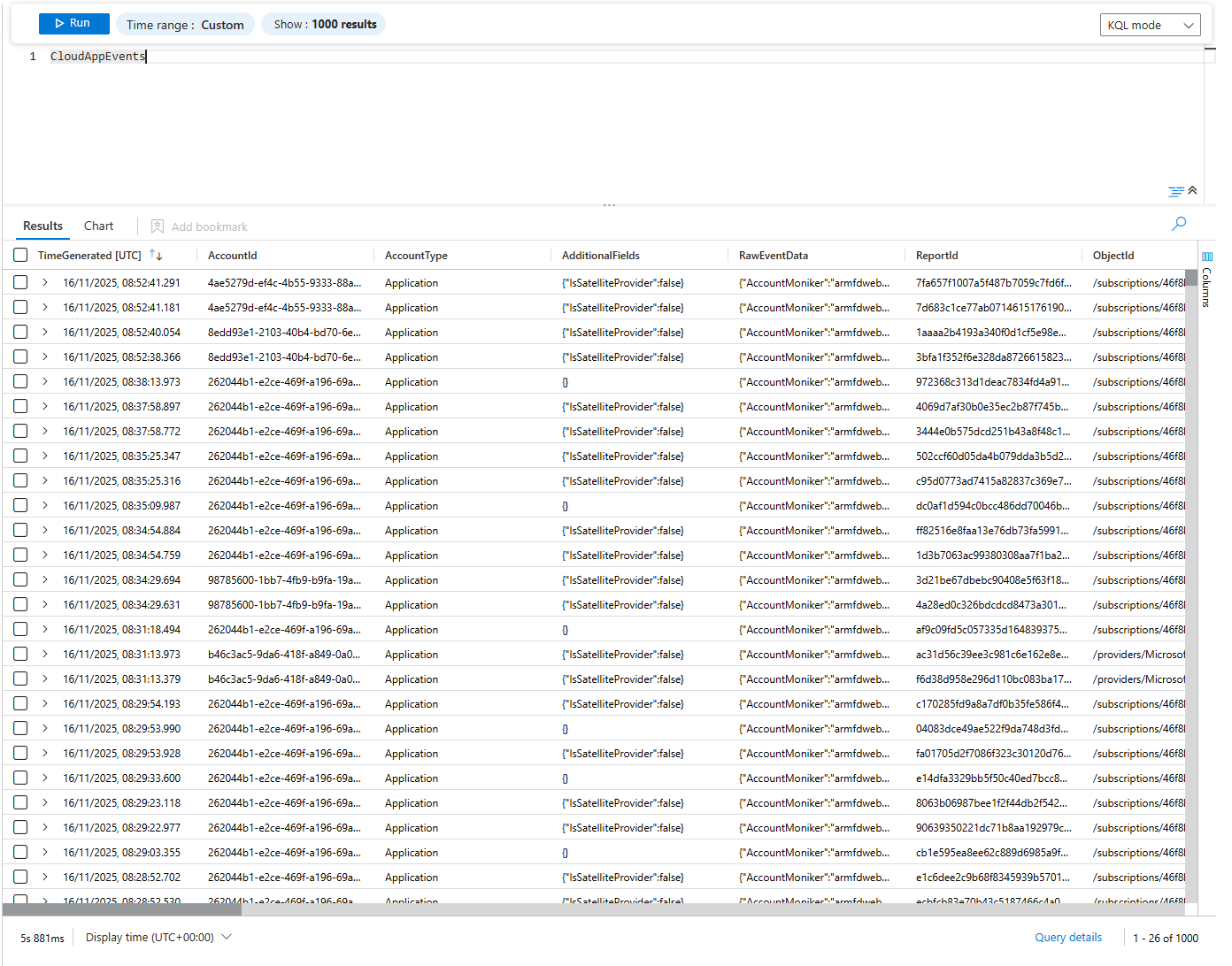 CloudAppEvents: Every admin action in Defender settings. Who changed policies? When someone released a quarantined email. What user settings changed? Suppose you're investigating whether an insider leaked security config. In that case, this is where you look (as you may know, CloudAppsEvents is native to Cloud Apps, and goes beyond that, showing your Defender for Office data as well as enriched logs from SaaS apps connected to Defender for Cloud Apps, fantastic table!)