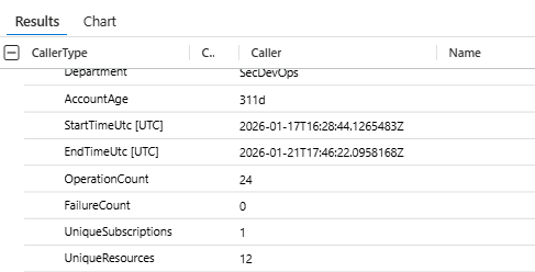 UniqueSubscriptions: 47Same activity. Completely different story. A high-risk account that's never touched resource deployment suddenly creating resources across 47 subscriptions. That's not rare. That's a compromise.