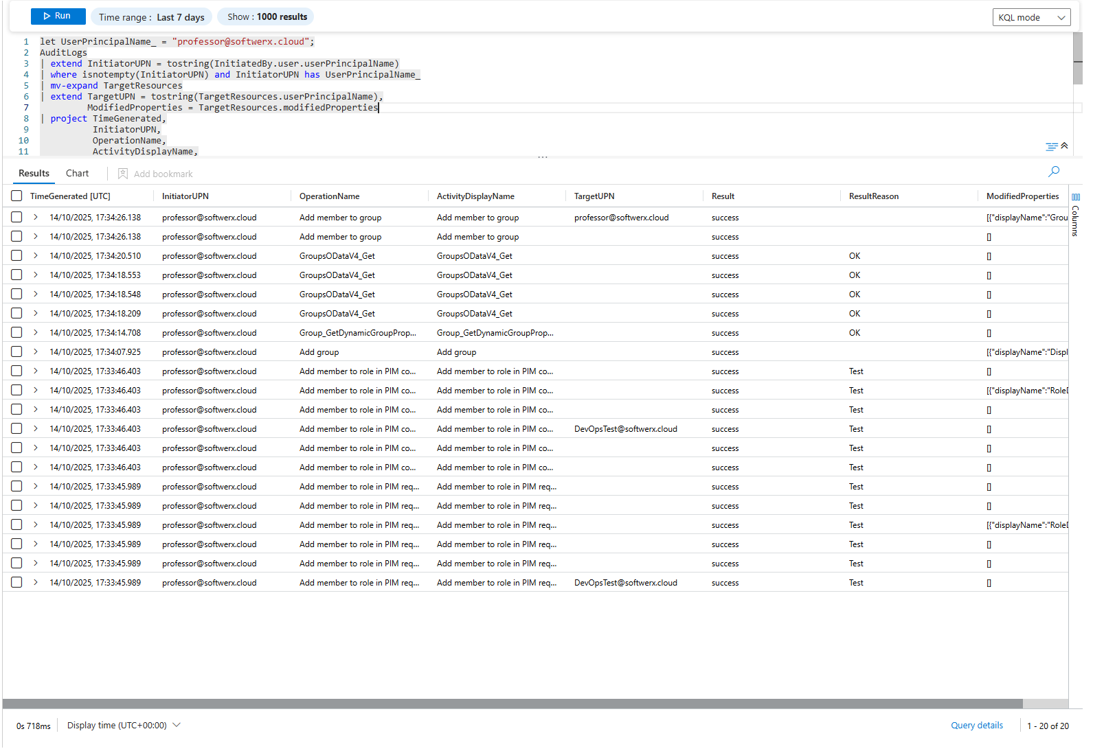 | sort by TimeGenerated descLet's break it down: This is a masterclass in handling complex logs. It pulls out the initiator's UPN, then uses mv-expand on TargetResources because one action can affect multiple objects. This gives you a precise audit of who did what to whom.
