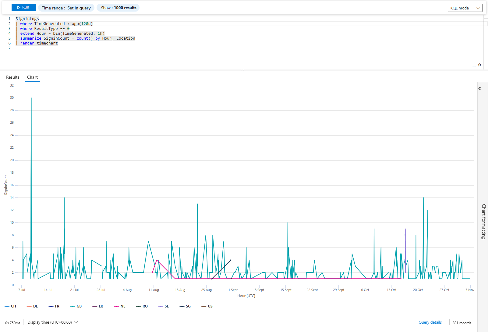 Tables are useless at scale. You know this already. A thousand rows of sign-in data tell you nothing. A hundred thousand rows of process events won't give you context. The human brain doesn't parse tables; it parses shapes, trends, and anomalies. That's why you need charts (and so does your CEO 😼)