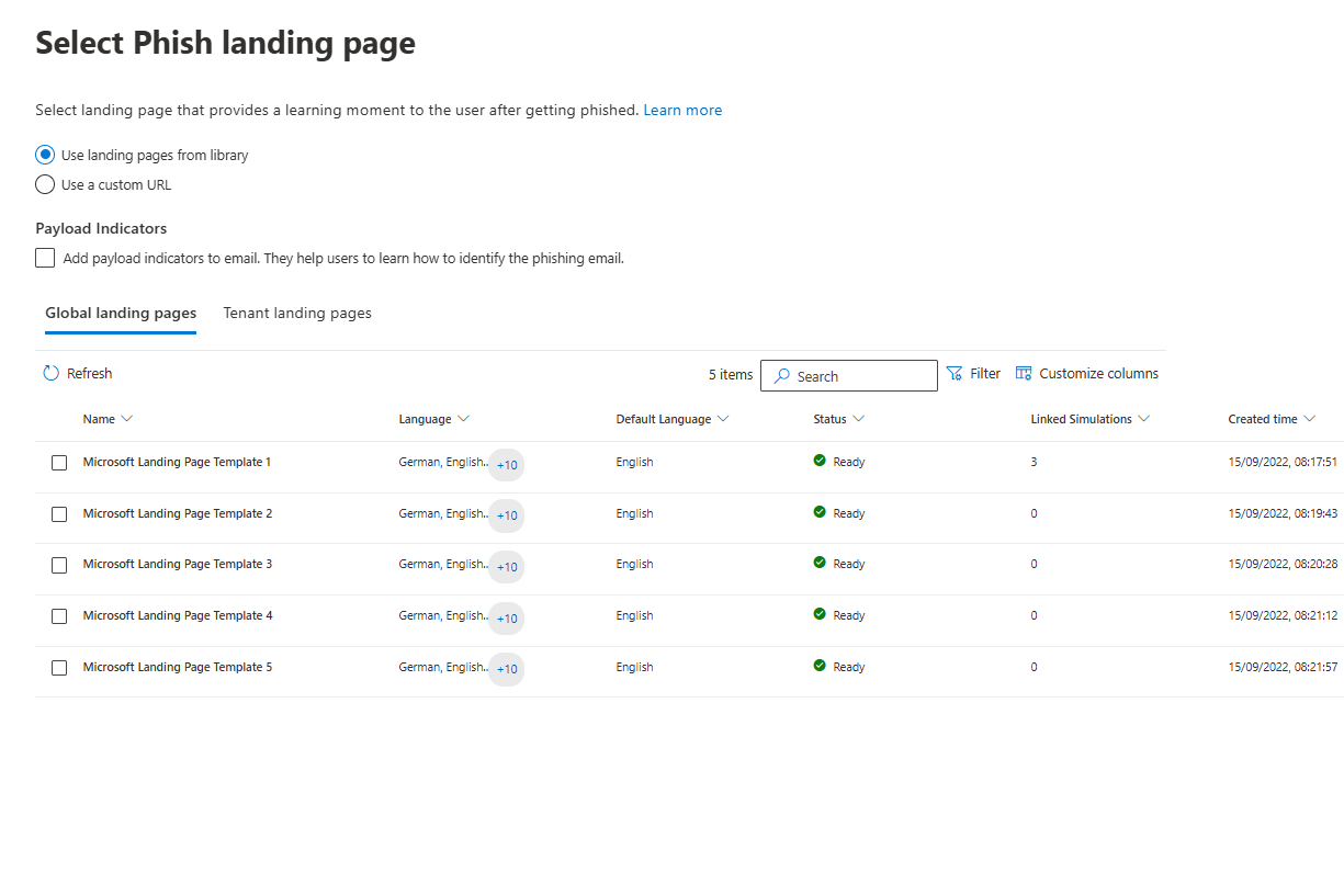 Global Payloads (read-only) is Microsoft's curated library. You can't modify these, but you can copy them and customise the copies.