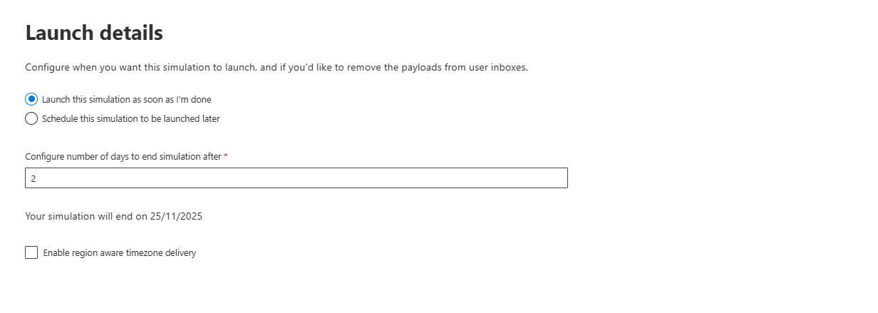 Launching details will help scheduling phishing campaigns, as you can set up multiple of them running one after another