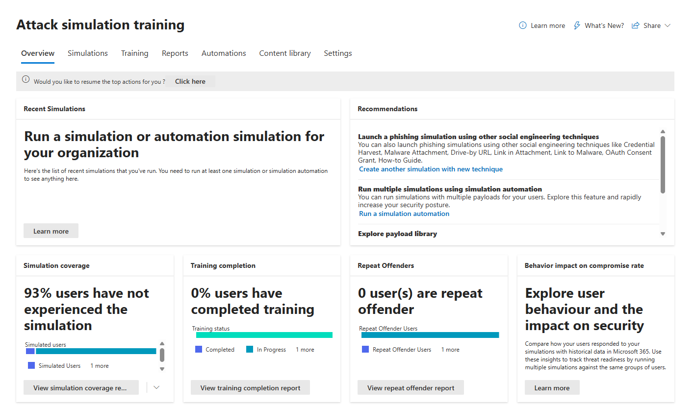 Microsoft's recommended training (based on what they fell for): Credential harvesting failures get a specific training module about spotting phishing. OAuth failures get different training.