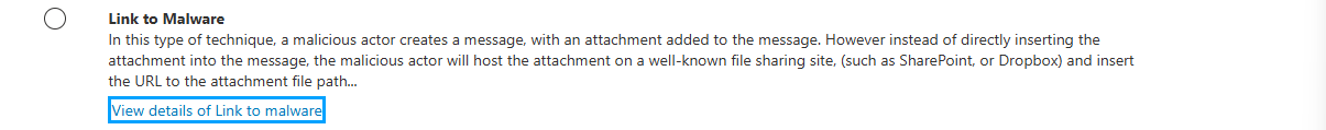 Link to Malware: Email with a link to a file on SharePoint or Dropbox. Click, malware downloads.
