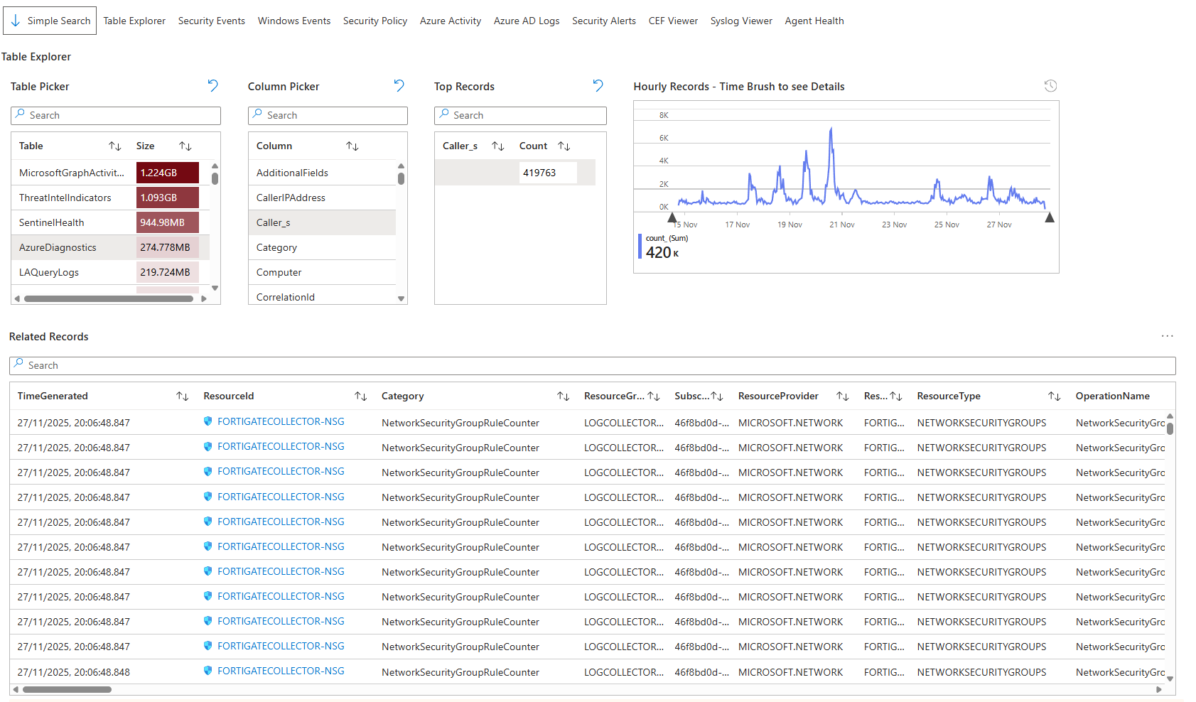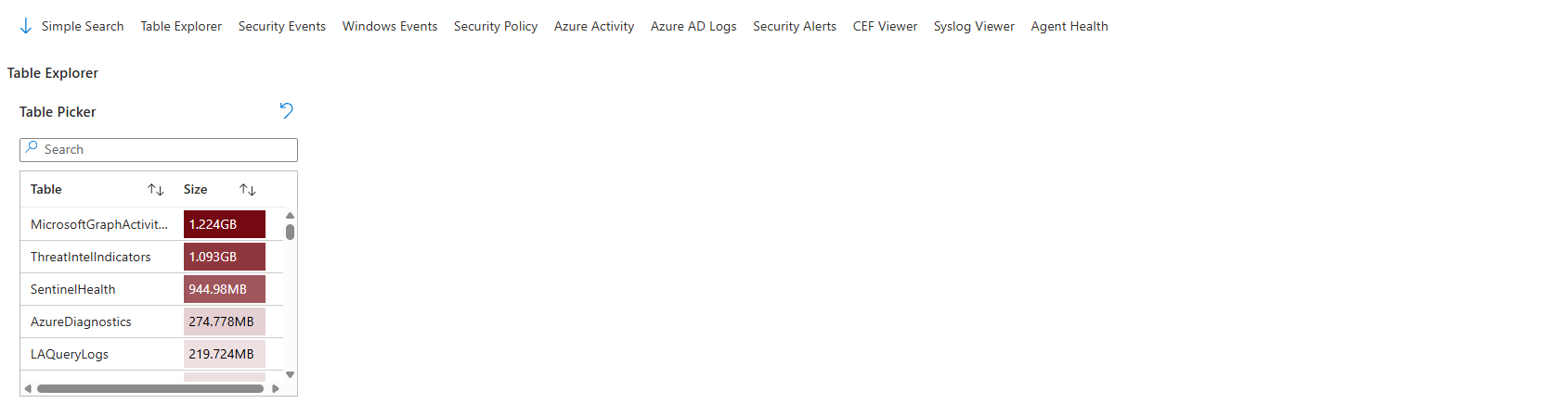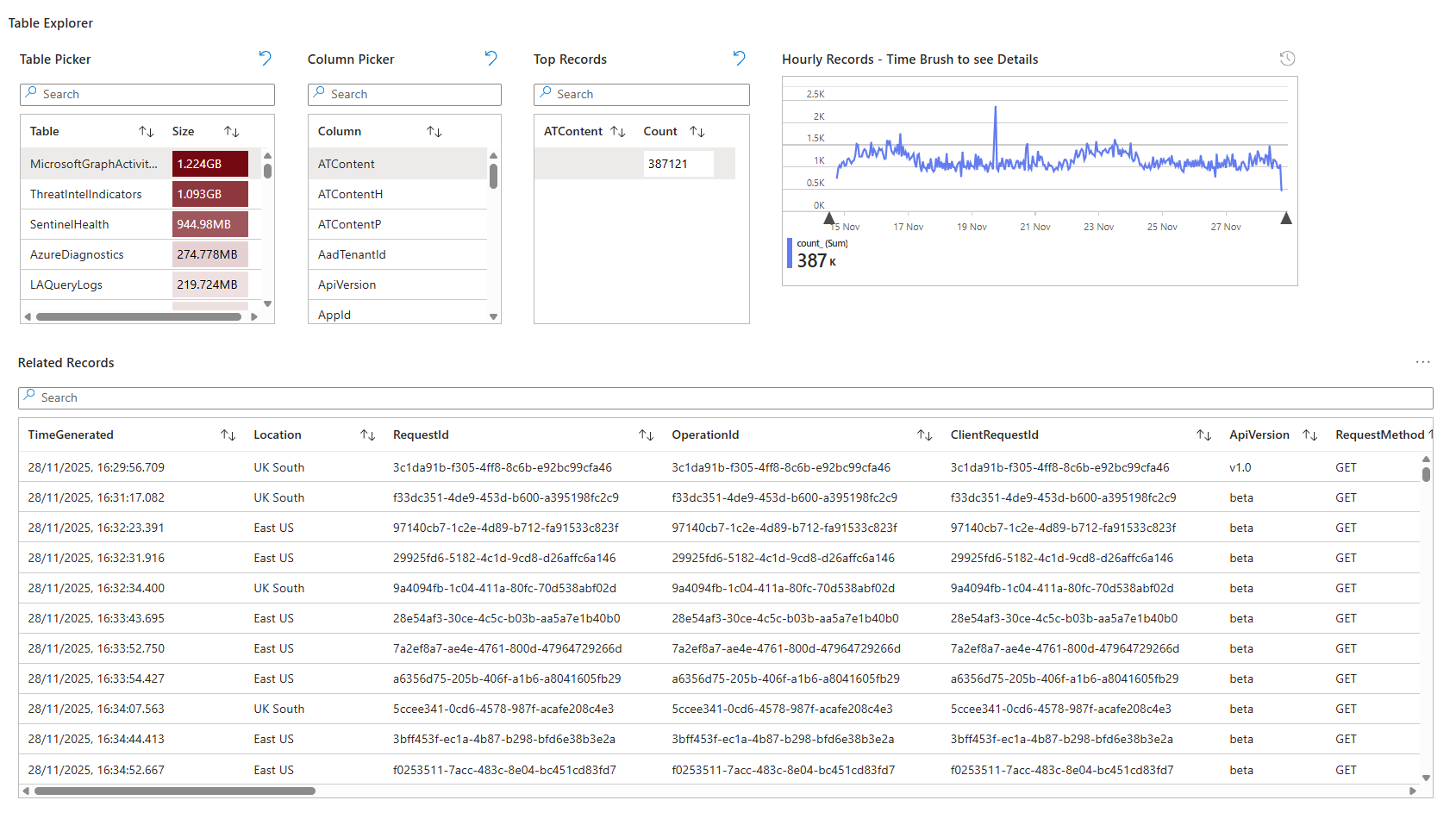 When an incident happens, and you need to drill down fast, this workbook is your window into what actually happened. No waiting for analysts to copy-paste KQL queries. The Table Explorer tab gives you a pick list of tables, columns, and counts without writing anything.