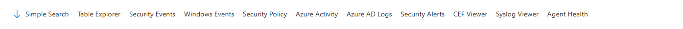 The workbook has tabs for Simple Search, Table Explorer, Security Events, Windows Events, Security Policy, Azure Activity, and Agent Health. Each is pre-configured for that data source. It's not fancy, but it's fast. That matters when you're investigating.