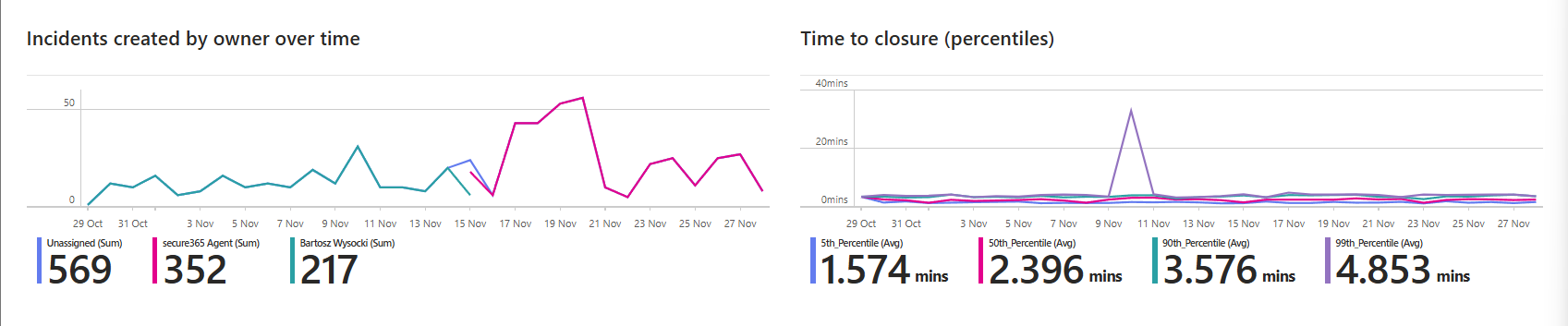 Most useful section: mean time to triage and resolve per owner. Shows which analysts are fastest and which need coaching. Not as punishment but as data. If one person closes incidents 2x faster, that's knowledge you extract and teach the team.